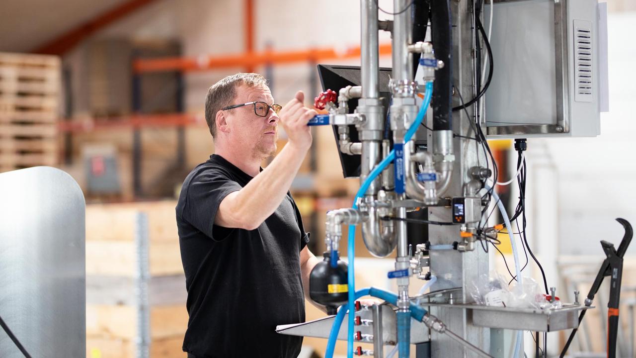 Unsere Produktions- und Büroeinrichtungen befinden sich im selben Gebäude, was eine enge Zusammenarbeit zwischen den verschiedenen Abteilungen ermöglicht. Dies sichert ein hohes Maß an Flexibilität, z.B. in Bezug auf Produktionsplanung, Prüfung und kundenspezifische Reinigungslösungen. Barcodes und gründliche Tests aller Geräte stellen sicher, dass die Waren, die unser Haus verlassen, zu 100% in Ordnung sind.