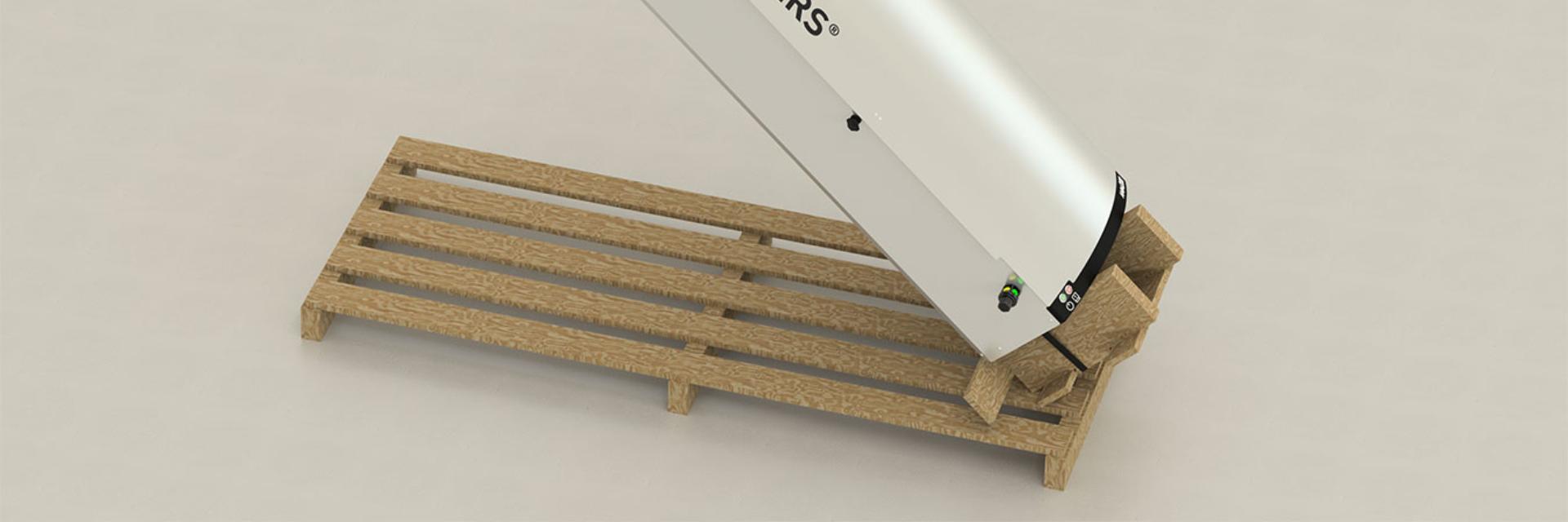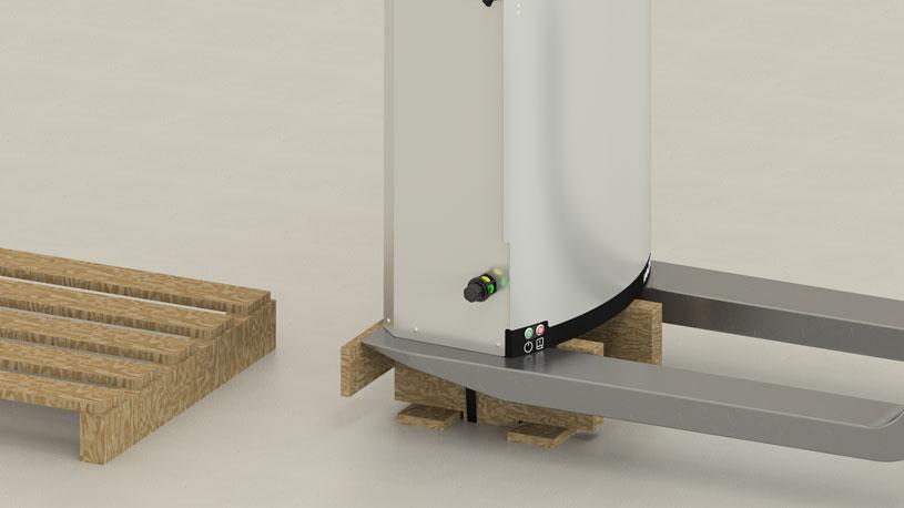 Ihr neues System Cleaners Gerät wird auf einer Palette liegend geliefert. Für die Montage an einer Wandhalterung oder einem Bodenregal empfehlen wir die System Cleaners Hebebügel (Art.-Nr. 96-010500). Der Hebebügel passt zu den Ein- und Auslassrohren.