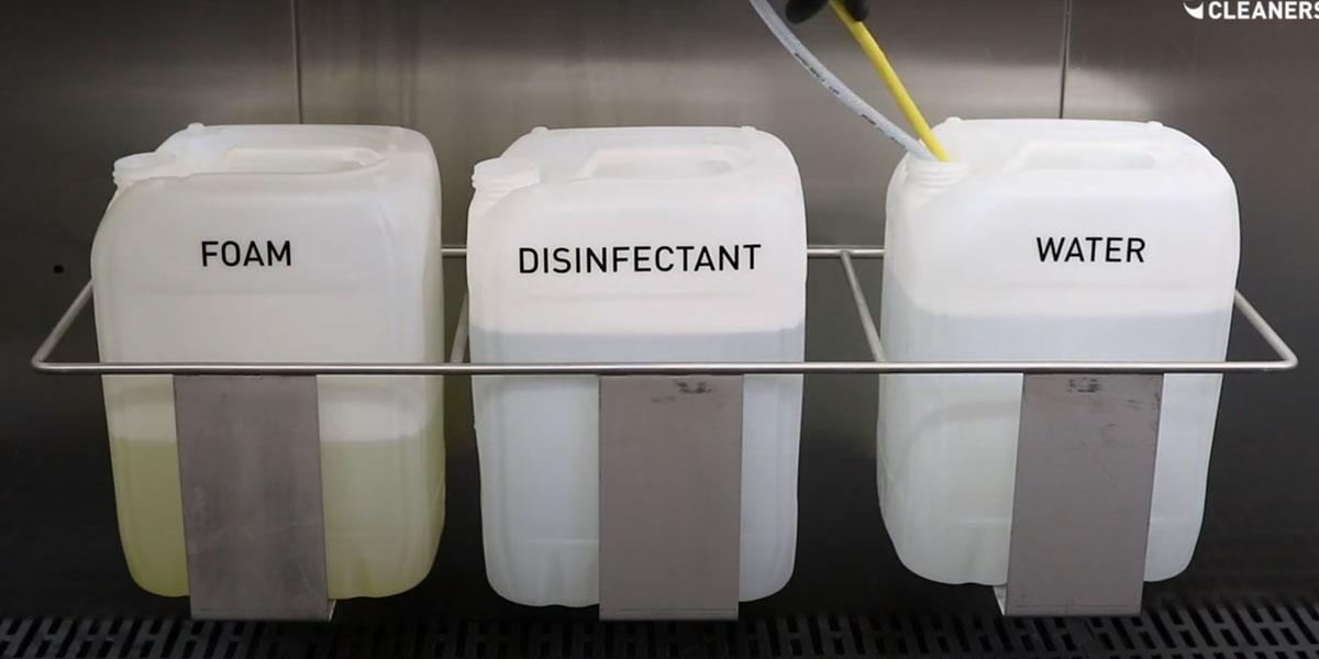 Wiederholen Sie den Vorgang mit dem Funktionswahlschalter für die Desinfektion und andere Schaumprodukte, falls solche verwendet werden.