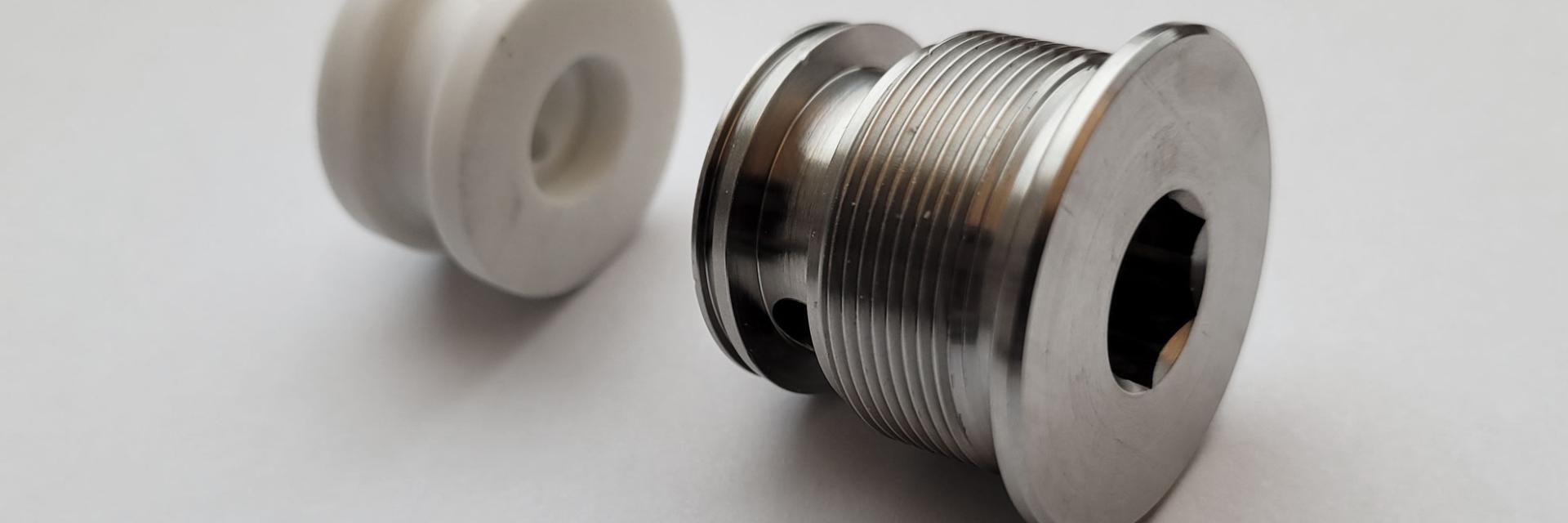 Die Abbildung unten zeigt den Unterschied zwischen einem Chemieventil, das nach jedem Gebrauch gespült wurde, und einem, das nicht gespült wurde. Das Spülen des Injektors nach jedem Gebrauch verlängert die Lebensdauer des Injektorsystems.
