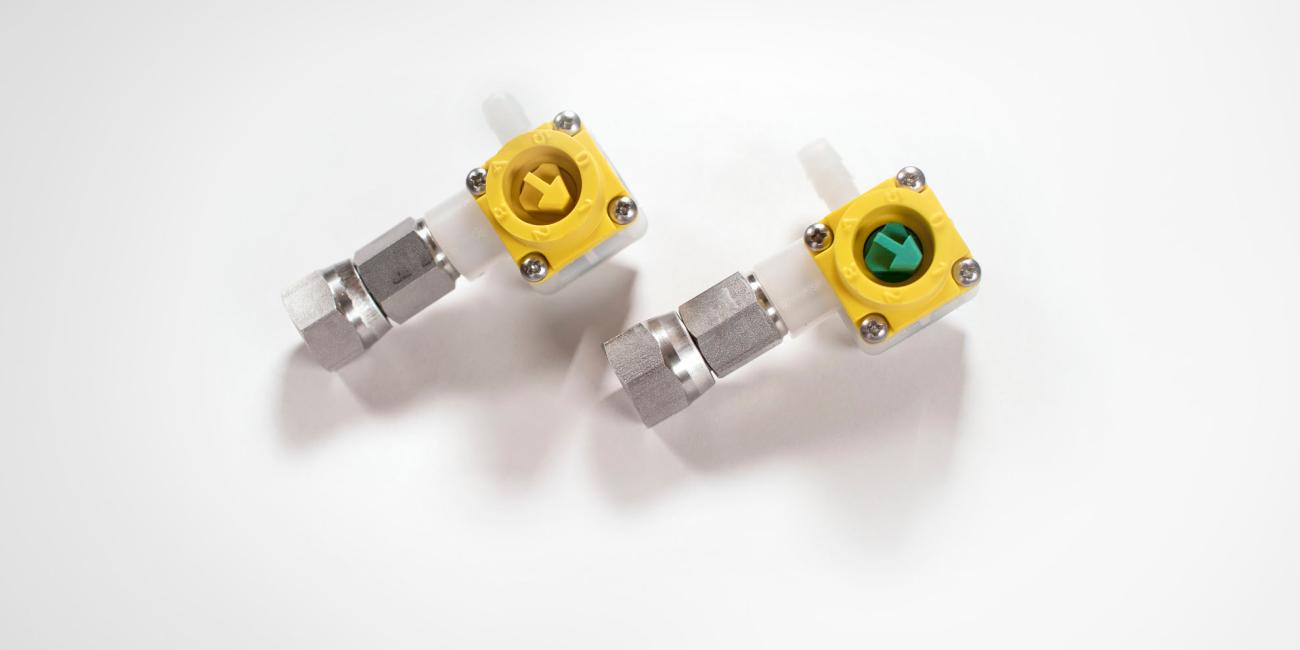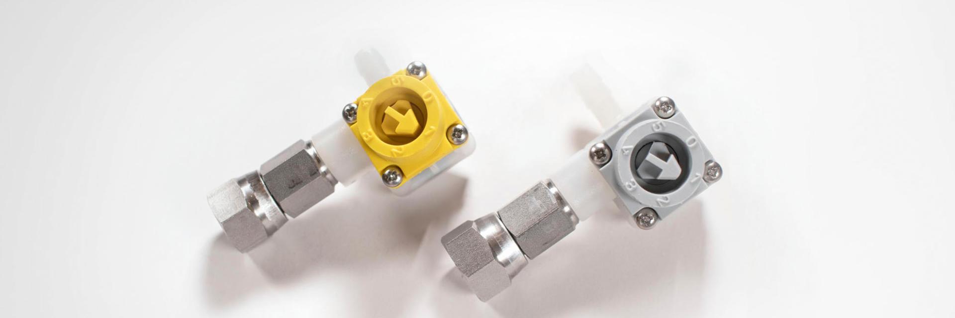 Durch Drehen einer Scheibe mit fünf verschiedenen Löchern kann die gewünschte Menge an Chemikalien genau bestimmt werden.