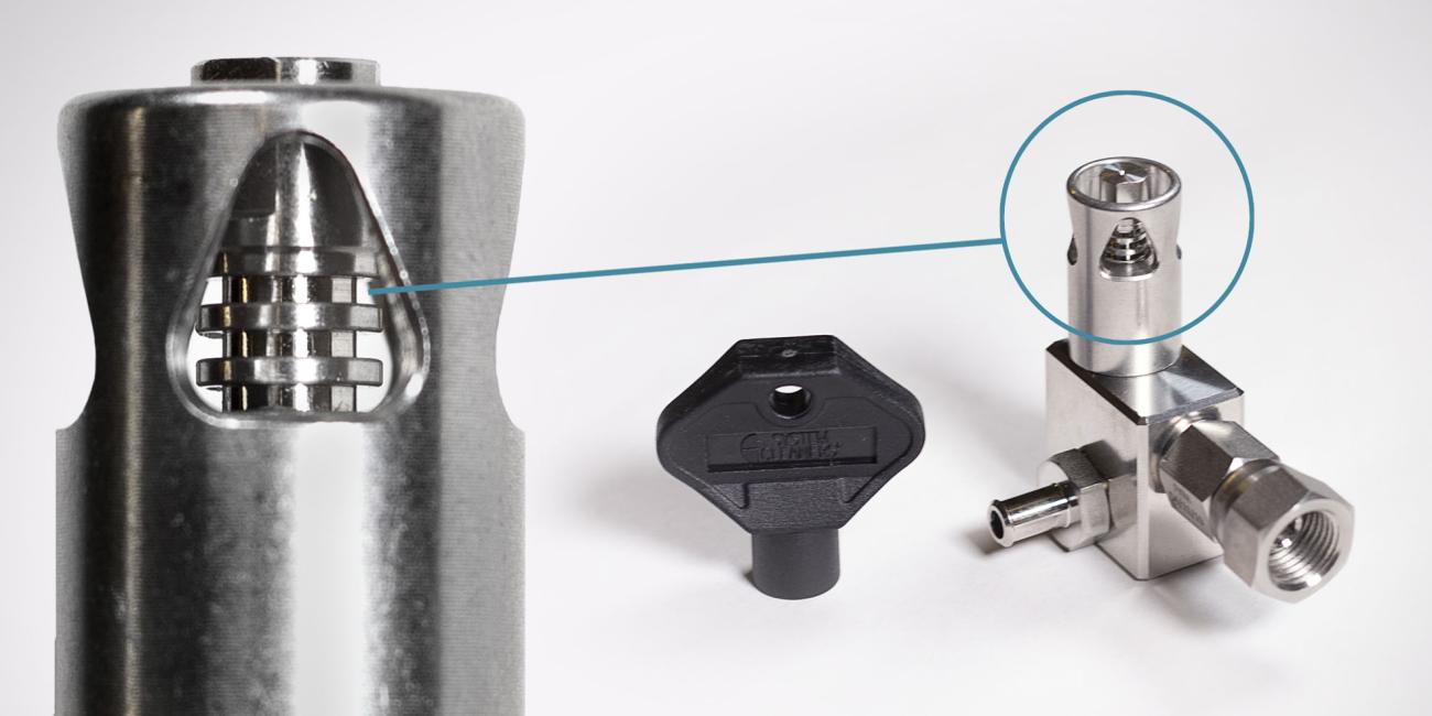 Die Dosierung wird mit einem System Cleaners Schlüssel eingestellt.